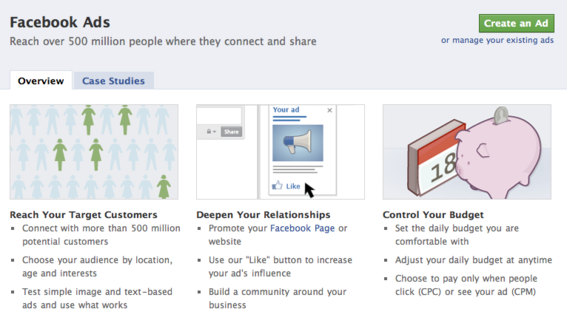 Facebook Ads allow advertisers to advertise either a destination within Facebook such as a Page, Event, Application or Group, or a separate website/web page for a cost which you will have to set by yourself. This means, you decide on how much you want to pay for your advertisement. Advertisers can either pay per click, meaning that you only incur a cost each time someone clicks through your ad or you can pay per thousand views. The pay per views options incurs a cost regardless of whether any clicks are received on the ad.