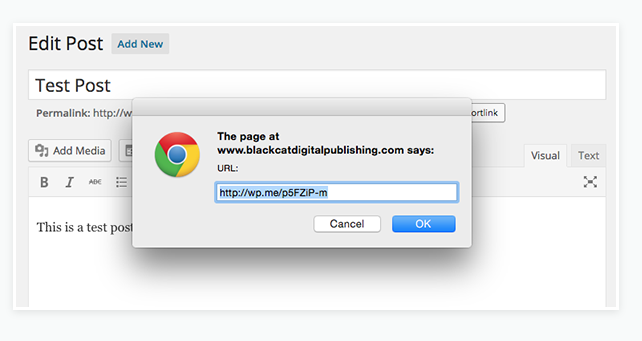 Hence, whenever you edit an existing post or page and click on “Get Shortlink” button, you will get a shortlink that includes the wp.me domain, whose functionality is similar to other URL shortening services.