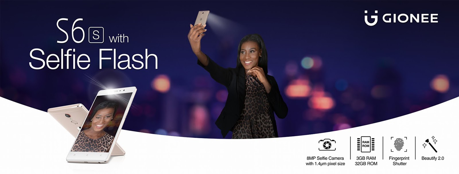 There is no condition too dark or too ugly for the Gionee S6s as it combines an arsenal of SCREEN AND SELFIE FLASH to eradicate any worries imperfect lighting may pose, making selfies a great delight. Regardless of the environment, the face beauty feature inherent in the Gionee S6s has an updated algorithm that can beautify every part of the skin, make lip colour rosy and even emphasize more details on eyelashes.