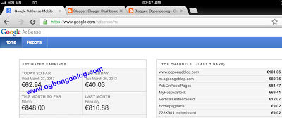 €30.19 from Adsense for mobile not bad too. Imagine earning x2 of my $19 monthly investment on mobstac just within 2days.