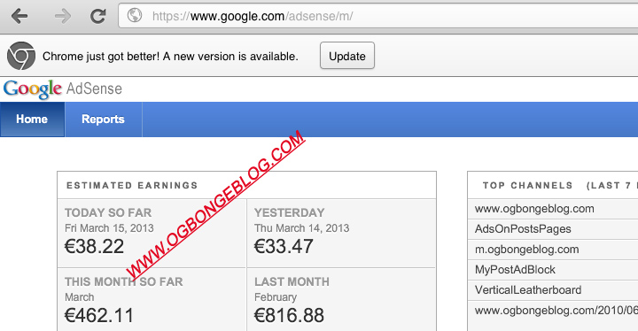 Guess what? I earned €462 in the first 15 days of March, 2013. This equals $622 and N97, 000 in US dollars and Naira (Nigerian currency) respectively. This is the first time am earning such in 15 days. It is more than x2 of January 2011 earnings which I shared in this post. Even during December 2012, which remains the month with the highest earning so far ($1,221.95), I was able to earn €409 in the first 15 days.