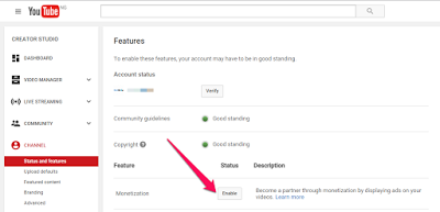 Alternatively, go to “My Channel” > Video Manager > Channel > Enable