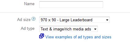 ==> Name your ad unit and select “970×90 Large leatherboard” from the “Ad size” drop down box
