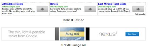NOTE: If you enable image and rich media ads for this unit, display ads in the size of a 728×90 unit might be displayed initially if Google doesn’t have a 970×90 rich media in their inventory.