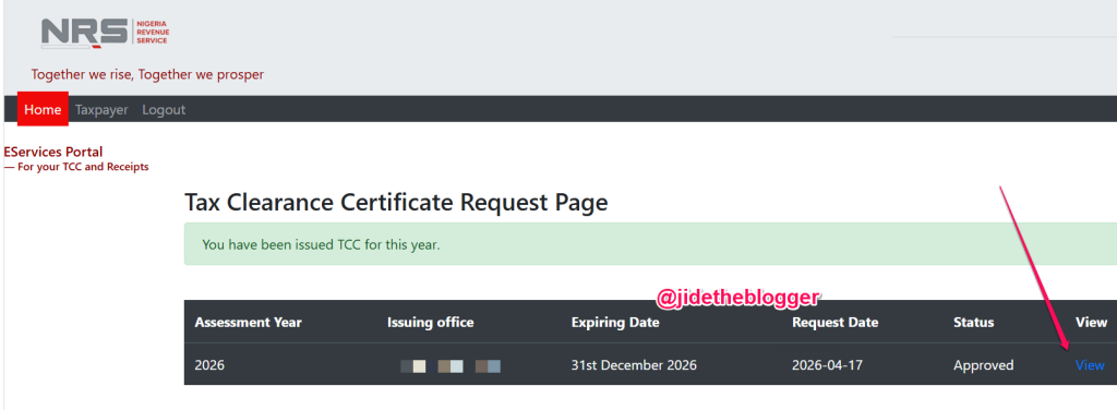 Your dashboard alone does not automatically give you your Tax Clearance Certificate.