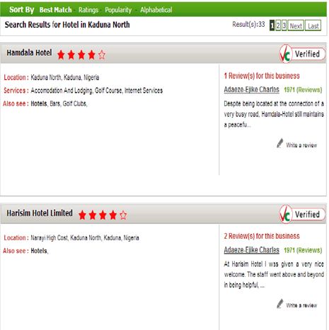 The site was helpful to my brother when he was searching for the contact info of the Nigeria Turkish International College and Nigerian stock brokers. I use the website alot in searching for internet service providers in any new location I find myself as well as dry cleaning and laundry services.
