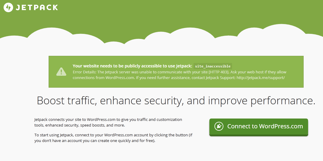 So, try it if JetPack can’t connect to WordPress.