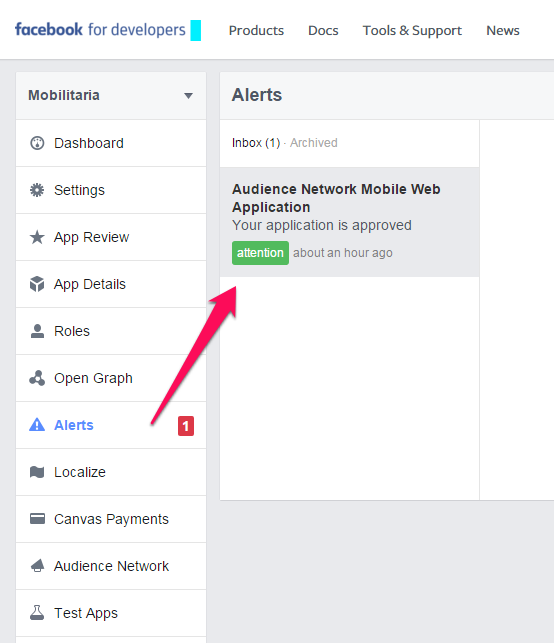 It took three working days for Facebook to approve the blog for the F.A.N for mobile web. The approval notification was sent via email and also displayed via the developer”Alerts” section of my Facebook app developer dashboard.