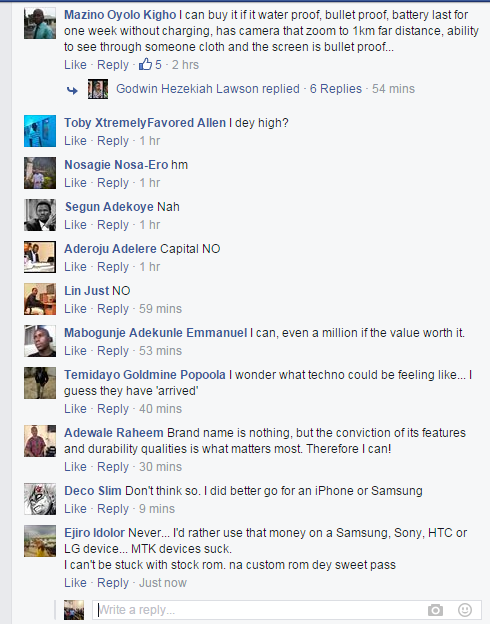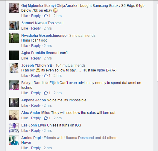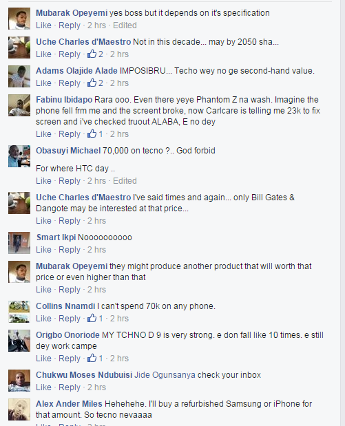 I decided to ask my friends on Facebook (mostly bloggers and members of bloggerslab) if they can spend N70,000 on the Tecno phone.