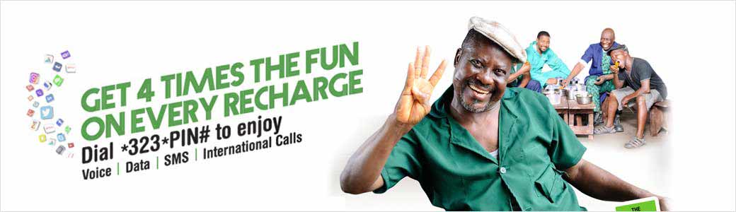 To enjoy the 4X bonus, you simply have to recharge your Glo lines by dialing *323*PIN# and you will receive the value of the recharged airtime + bonus. This offer is available on all Globacom prepaid tariff profiles i.e available to all new and existing prepaid customers.