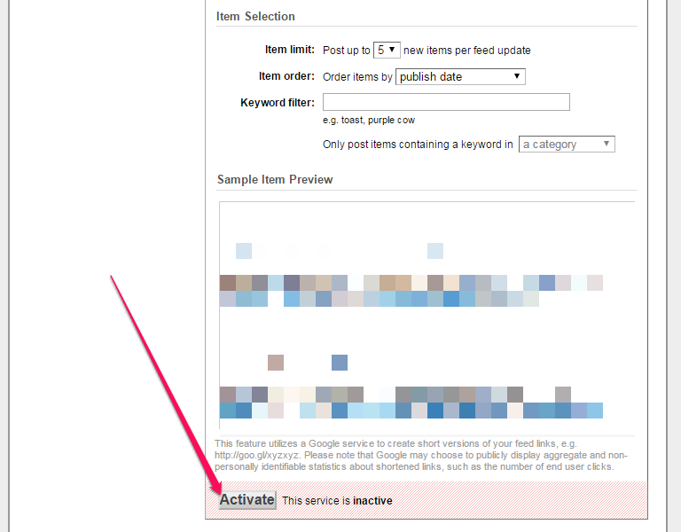 If you have an existing feed there for your blog, click on it and click on the “Publicize” tab