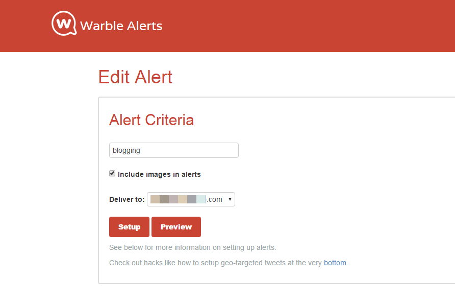 By making use of Warble alerts, you won’t miss any important tweet regarding a particular hashtag, keyword or phrase that happen when you’re working, sleeping or just too busy. All you just need to do, is to set up an alert and the alerts get delivered to your email once a day and you can read them on any device whenever you want.