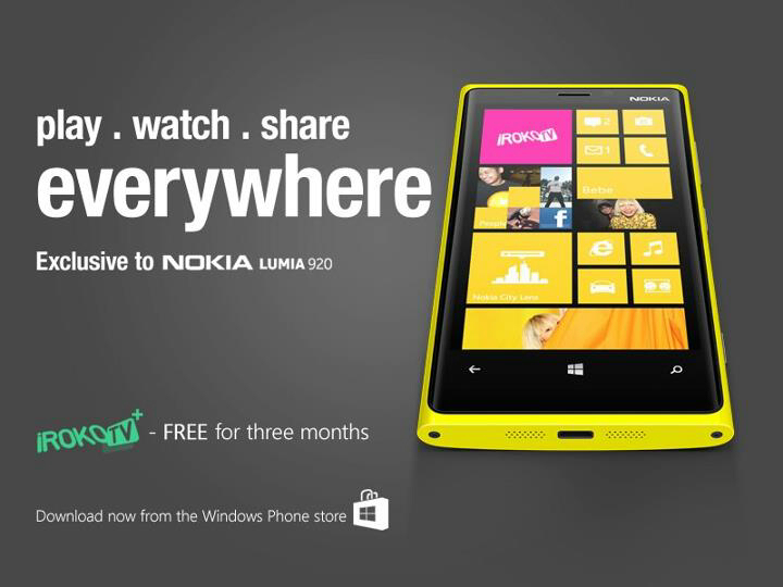 iRoko TV has partnered with Nokia to allow you watch the premium movies on iRokoTV free of charge for three months. For you to watch the movies free, you must download the iRokoTV App. The app features Nollywood movies from iROKOtv. This three months-offer is exclusive to Nokia Lumia 920.